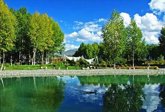 龙王潭(藏语日鲁康)是拉萨著名的园林建筑之一。园林中心有一面积较大的潭水,传说六世达赖仓央嘉措曾从墨竹工卡迎请墨竹赛钦和八龙供奉于北潭水中,所以称龙王潭。在这里可以拍到布达拉宫的倒影。