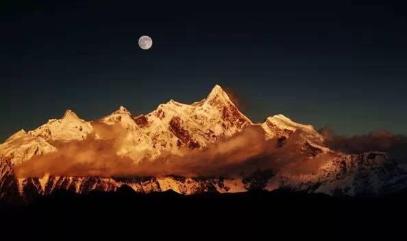 在中国最美雪山南迦巴瓦,一起看太阳落下,月亮升起。