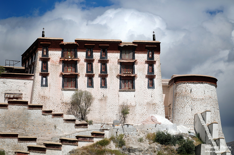 布宫的建筑凝聚了藏人的智慧,宫墙用草原上的白马草经过藏红花等藏药的浸泡制作为填充物,既减轻墙体的重量,又防腐防蚀经年不朽,真是又科学又环保。