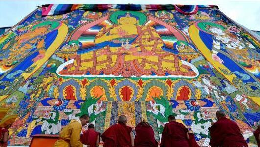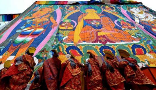 西藏扎什伦布寺展出强巴佛巨幅唐卡佛像(组图)