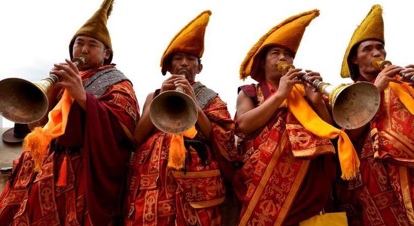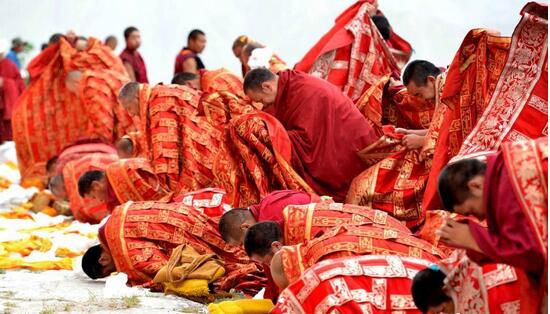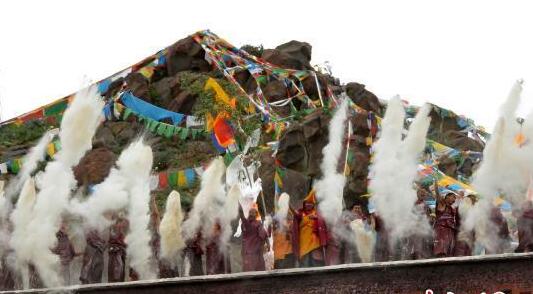 7月20日,为期3天展佛结束之后,僧人在展佛台上诵经并向天空抛撒糌粑,以示来年再展。