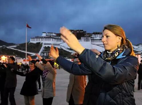 6.与三五好友,遥望布达拉宫夜景,在广场上跳起换了的锅庄。