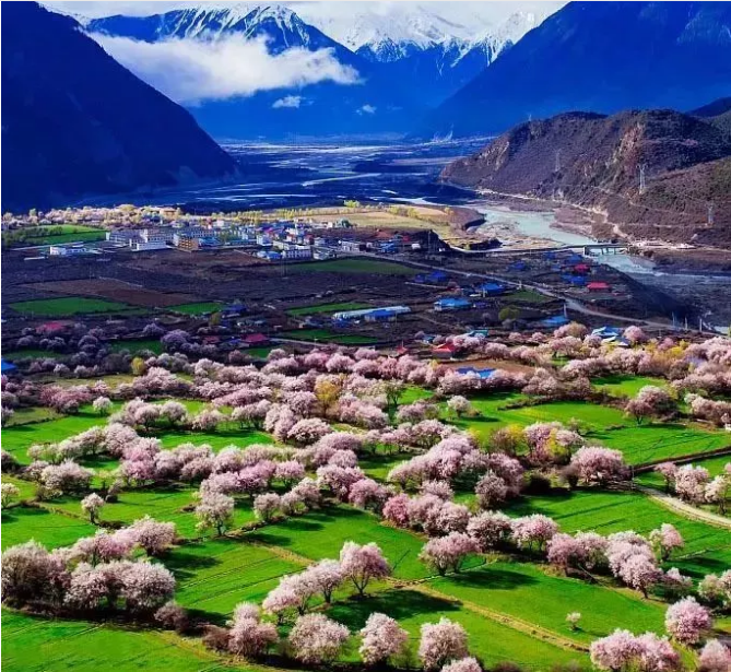 2、林芝各县桃花盛开时间大概为:朗县—巴宜区—波密县—米林县和察隅县—工布江达县;
