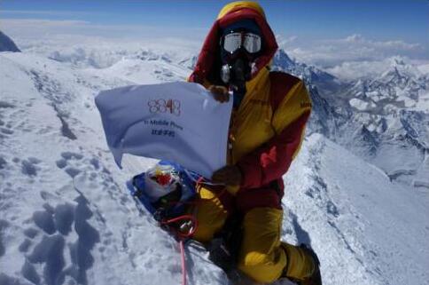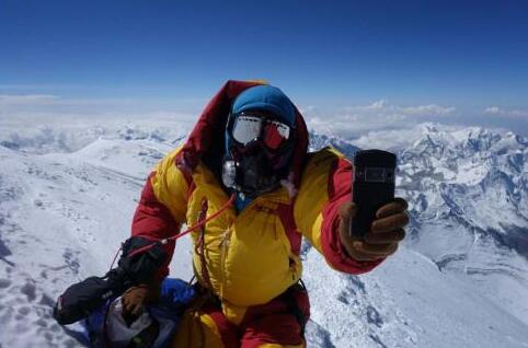 宋玉江手持8848钛金手机在珠峰之巅完成海拔最高的自拍