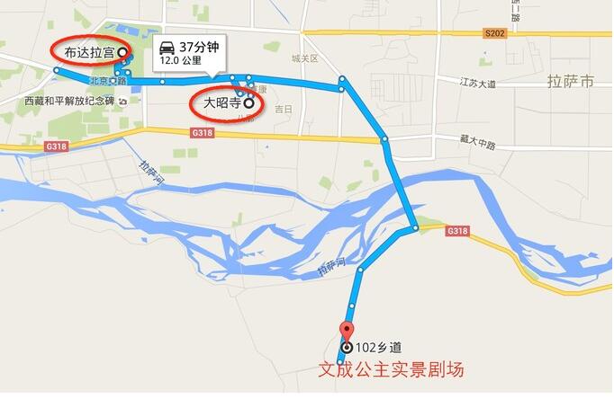 交通:从大昭寺出发坐公交车11路或17路,三站地在邮车总站下车,下车后需步行约3公里。建议直接打车,费用30-50块,到《文成公主》的车一般不打表,必须提前跟司机商量好价钱。