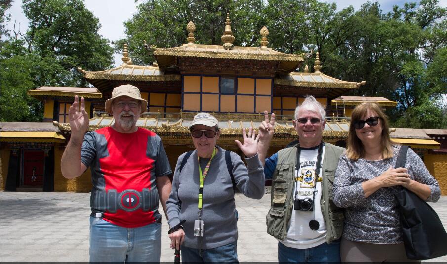 来自美国的游客在罗布林卡参观。 进入6月以来,西藏旅游市场逐步进入旺季,各旅游景点的国内外游客明显增多。