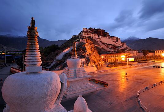亲眼看到布达拉宫感觉没有想象中的震撼,也许是因为心里缺少了那份信仰。以前看照片总认为布宫是被广角缩小了,亲眼看到却发现原来规模并不很宏大。同行的朋友说这也不奇怪,毕竟守着皇帝的紫禁城长大,布宫的级别也只能算是个两广总督衙门。看完布宫的日落沿路走过西藏电视台去导游推荐的西藏牛排馆腐败,他们的酥油人参果饭和各类藏餐,印度餐味道都不错。