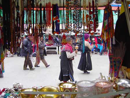 人的虔诚也分三六九等,就像我的导游坚持着不吃鱼,而信同样宗教的司机却生荤不忌。记得我看到第一个磕大头的人就对朋友说“不知道她们是不是希望来生能够出生在北京”,朋友摇摇头,“也许能出生在拉萨就已经是一种奢望”。看着她们紧锁的双眉和脑门儿上的汗水胶合着土,真的很难去体会和理解一步一磕蹒跚几千里所需要的那种坚定的信仰和执着,但我宁愿相信她们的内心是平静和幸福的。