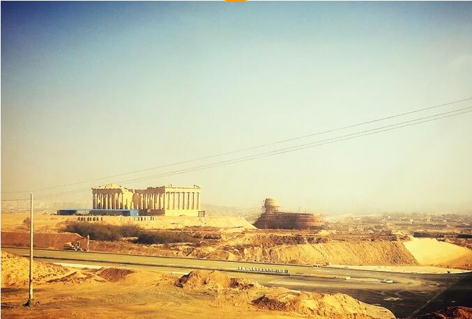 列车的行驶路线是环绕兰州城的西部,黄土丘陵地貌。但快要进入城市的时候,突然出现了巨大的烟囱,这里污染严重,整座城市的上空都是灰蒙蒙的粉尘。