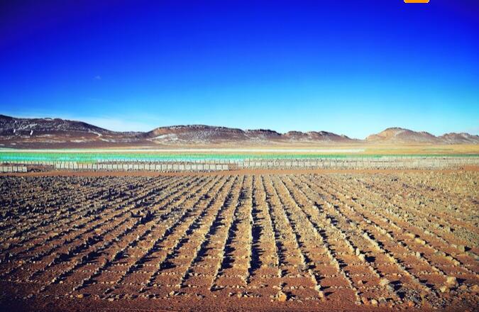 翻越念青唐古拉山后,路旁已经可以看到一些藏式村落了,还有就是这些防沙用的石阵和拦沙网。这些荒原寸草不生,一阵狂风袭来,卷起的砂石就能埋没铁轨,所以在这里防沙工作尤为艰巨。