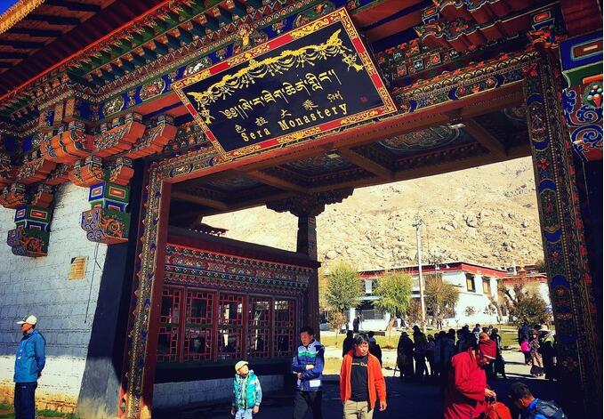 色拉寺全称为“色拉大乘洲”,位于西藏拉萨布达拉宫北面3千米巨石峥嵘的色拉乌孜山脚。色拉在藏语里是野玫瑰的意思。传说山下修寺时这里长满了野玫瑰,色拉寺因此得名。在藏区寺庙里,经常能看到举家出行的。孩子们从小就学习念佛经、磕长头。在色拉寺的某个小佛堂内,听到僧人的诵经声,循声而入,见到一个四五岁的小女孩,跪在僧人旁边,双手合十认真听经。僧人视其为无物,仍然自顾自地打扫佛堂,口中诵经。一切就是这么自然。
