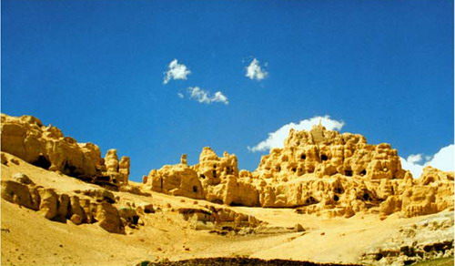 远远望去,满眼的金碧辉煌;在高原迷幻光影的衬托下,宛若神话世界。近前观瞧,便会看到象泉河两岸土林环绕,道不尽天工巧夺。那举世所无的奇观,像庄严宏伟的庙宇,像壁垒森严的碉楼,像恢弘高耸的佛塔,像极尽豪华的古代宫殿,像古朴威严的欧式城堡,也有的或如万马奔腾、昂首啸天,或如教徒修行、虔诚静坐,天工万象,无可尽数。穿过土林深处前往令您仰视雄伟壮观的【古格王朝】,古格王国遗址是一座高原古城,位于阿里札达肥札不让区象泉河畔的一座土山上,占地约18万平方米,是全国第一批重点文物保护单位之一,整个遗址建筑共有房屋洞窟300余处、佛塔(高10余米)3座、寺庙4座、殿堂2间及地下暗道2条,分上、中、下三层,依次为王宫、寺庙和民居。外围建有城墙,四角设有硼楼。在其红庙、白庙及轮回庙的雕刻造像及壁画中不乏精品。曾经有过七百年灿烂的文明史的古格王朝,它的消逝至今仍是个谜。晚上返回塔尔钦入住。