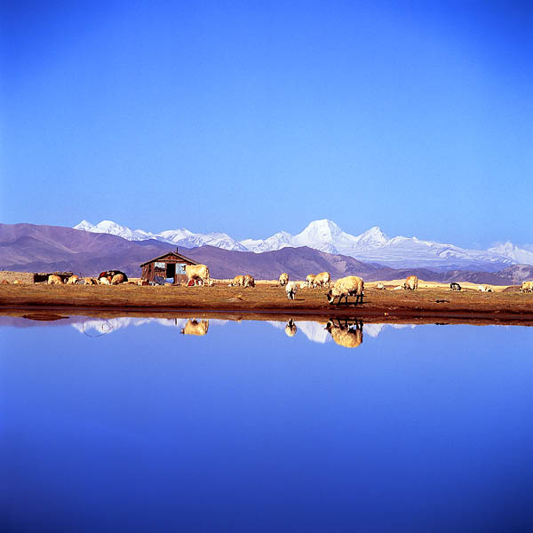 西藏第一大湖——色林错(海拔4500米)。色林错在藏语意为“威光映复的魔鬼湖”,和昂拉仁错一样是鬼湖。在貌似可怕的名字下,看到的是湛蓝湖水,牛羊成群,一片高原牧场的景象。在色林错湖边找地方路餐之后继续出发,会看到许多大大小小的无名湖泊(陛骆错、果根错、班戈错等),这些湖也曾经与色林错是一体。越野车不停的在泥塘和山坡间上下起伏,渐渐驶上久违的水泥公路,此时已然到达班戈县城(BaingoinZong,海拔4750米)。