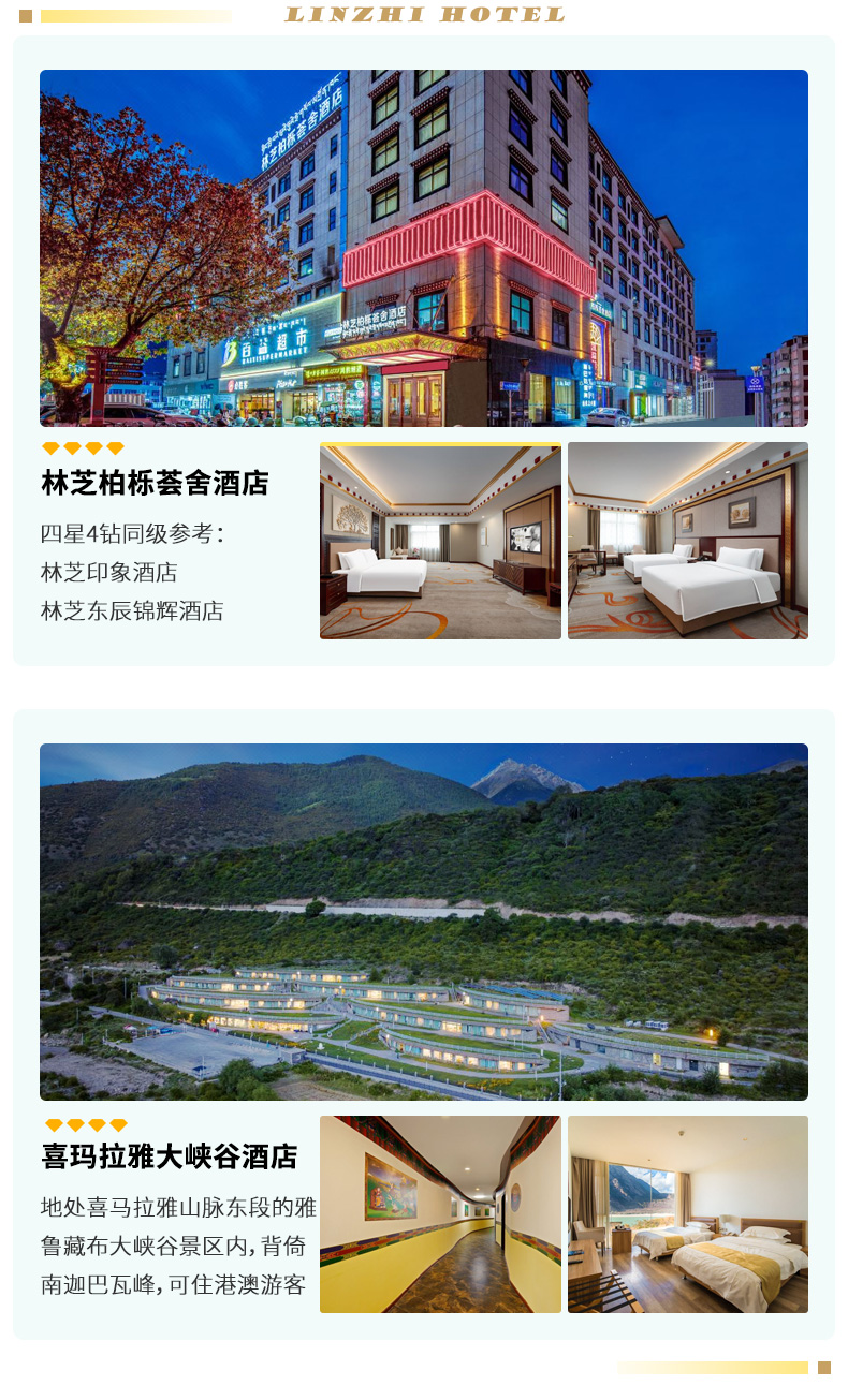 酒店安排:城市地区为携程4钻/4星舒适型酒店,乡镇地区为当地精品酒店或民宿(可住外宾,港澳台同胞);珠峰帐篷旅馆为多人间通铺床位无独卫)。如需升级酒店,欢迎您联系我们。