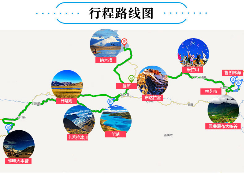 *参观说明:海拔从3650-5190-4718-3650米,山口及湖边风大海拔高,请不要停留过久,注意保暖及减缓动作。