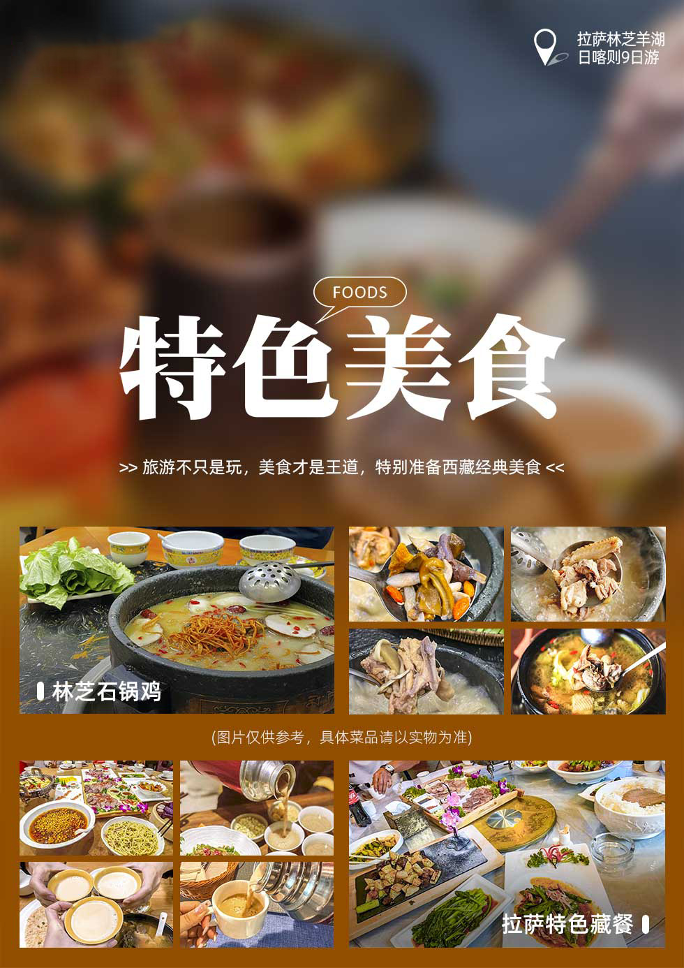 餐食安排:(8早2正)全程酒店含早,提供2个特色正餐(免费赠送,不吃不退):西藏特色餐(林芝石锅鸡、拉萨特色餐(藏餐或尼泊尔餐))。