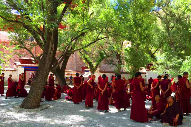 作为藏传佛教格鲁派6大主寺之一,也同时与哲蚌寺、甘丹寺合称为拉萨三大寺。寺内保存有上万个金刚佛像,其中最著名的塑像“马头明王”金刚像位于吉扎仓的护法神殿内,当地人会把头伸进一个小神龛内,用头触碰雕像的底座。除去寺庙的庄严之外,色拉寺还有一大特色,即为在寺喇嘛的辩经活动。辩经场正中央有喇嘛们正在辩论知识,有的用有力的击掌声催促着对方的回答,有的拉动佛珠借助佛珠的力量来战胜对方。驻足在辩经场,便是置身在热闹的声音中,游客虽无法听懂他们的禅意,却能真实的感受到藏传佛教的信仰和力量。辩经时间一般从下午15:00开始。每逢周日、或偶遇寺庙临时举行法会、接待特定人士时,可能会取消辩经活动,敬请谅解!!!