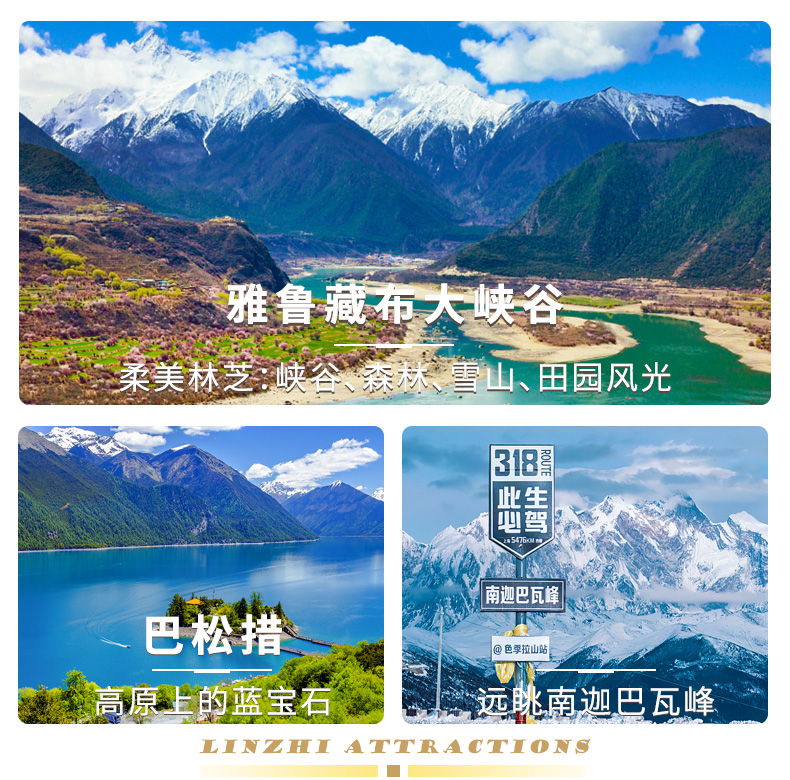 | 第5天 | 林芝-巴松措-林拉公路-拉萨 | √ | √ | × | 拉萨 |