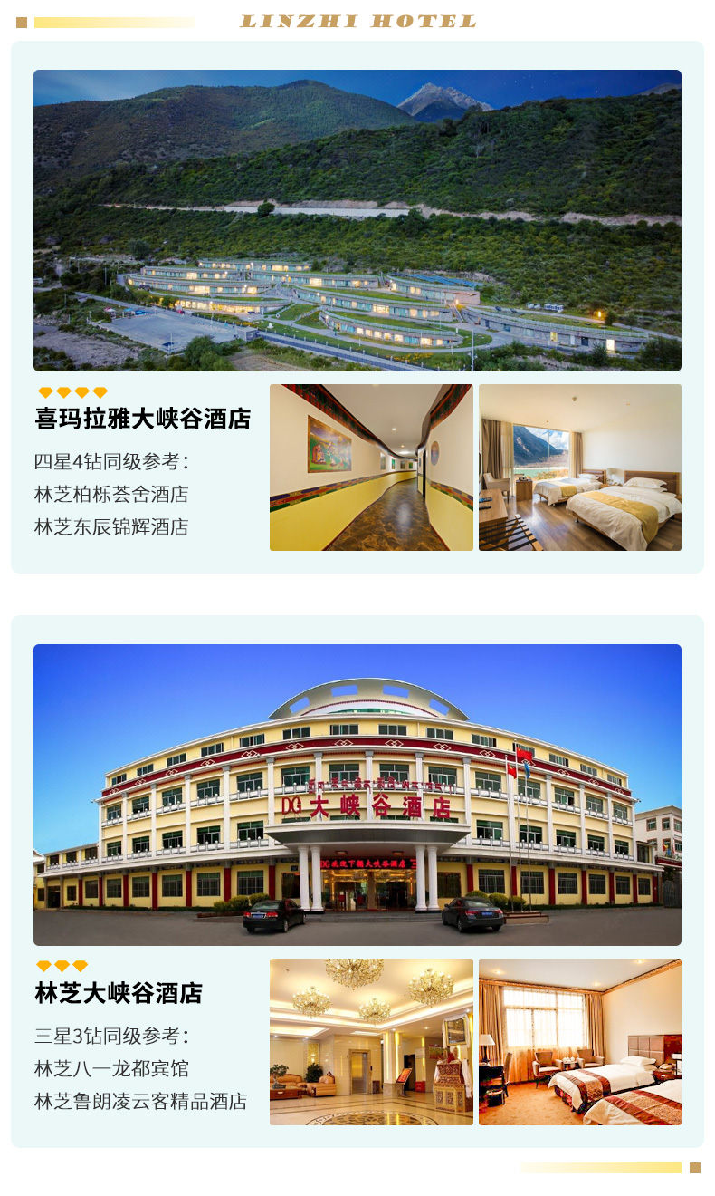 | 第3天 | 拉萨-米拉山隧道-卡定沟-林芝大峡谷(索松村) | √ | √ | √ | 林芝 |