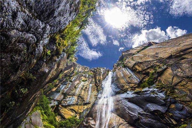 途中前去意为“天上人间”的原始森林【卡定沟】(门票包含)。距八一镇24公里处的尼洋河畔卡定沟内,是典型的峡谷地貌,奇峰异石古树参天,落差近200米的瀑布飞流直下雄伟壮观,瀑布中一尊天然形成的大佛面目慈祥,在瀑布中时隐时现,天佛瀑布由此而得名。岩壁上有自然形成的佛像、女神、观音、护法、如来佛祖、喇嘛颂经、神龟叫天、神鹰献宝、酥油灯,以及藏文“六字真言”佛字等;与藏传佛教浑然一体的优美传说及清新自然的天然氧吧将使您无限陶醉。