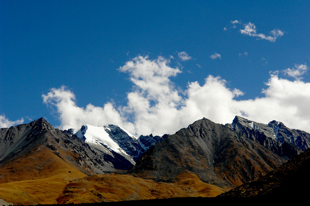 早晨8:30点从帕羊出发前往神山神湖鬼湖,途中瞭远看到冷不岗日山峰,海拔7095米,经过仲巴到达帕羊,先参观神湖玛旁雍错,中国湖水透明度最大的淡水湖泊。藏语意为“不败、胜利”,有“神湖”之称。位于冈底斯山主峰──冈仁波齐峰和喜马拉雅山纳木那尼峰之间,西藏自治区普兰县内。玛旁雍错亦称马法木措,曾称玛垂措。曾与拉昂措(鬼湖)相通,后由洪积,冰水堆积物堵塞而演化为内流湖。玛旁雍措是淡水湖,而拉昂措是咸水湖,【拉昂措】人称鬼湖,与圣湖一堤之隔,两湖之间的地带是进出普兰县的必经之路。据说鬼湖是无风三尺浪。其实这里的景色非常美丽,湖边暗红色的小山,颜色迷离。据说玛旁雍措与拉昂错湖底相通,一边是淡水的圣湖,另一边却是咸水的鬼湖。可以说,拉昂措也是一引人入盛的景观。后经马攸桥边防检查站到神山—岗仁波齐下的小镇塔尔青。【岗仁波齐峰 】岗底斯山主峰岗仁波齐峰,海拔6638米,梵语称之为“湿婆(印度一种神的名字)的天堂”,藏语意为“神灵之山”, 岗仁波齐峰形似金字塔(藏民称象“石磨的把手”),四壁非常对称。由南面望去可见到它著名的标志,岗仁波齐是世界公认的神山,同时被印度教、藏传佛教、西藏原生宗教苯教以及古耆那教认定为世界的中心。冈仁波齐是世界公认的神山。冈仁波齐并非这一地区最高的山峰,但是只有它终年积雪的峰顶能够在阳光照耀下闪耀着奇异的光芒,夺人眼目。 神山神秘之处,山的向阳面,不知缘何,终年积雪不化,白雪皑皑;而神山之背面,长年没雪,即使被白雪覆盖,太阳一出,随即融化,与大自然常规刚好相反。巍峨挺拔的神山既有气势雄峻之处,又有幽静肃穆之所,被众多的奇峰环抱,更有那奇妙的岩石、峡谷、灌木古柏、洁泉清流。冈仁波齐峰经常被白云缭绕,很难目睹其真容,峰顶终年积雪,威凛万峰之上,极具视觉和心灵震撼力。