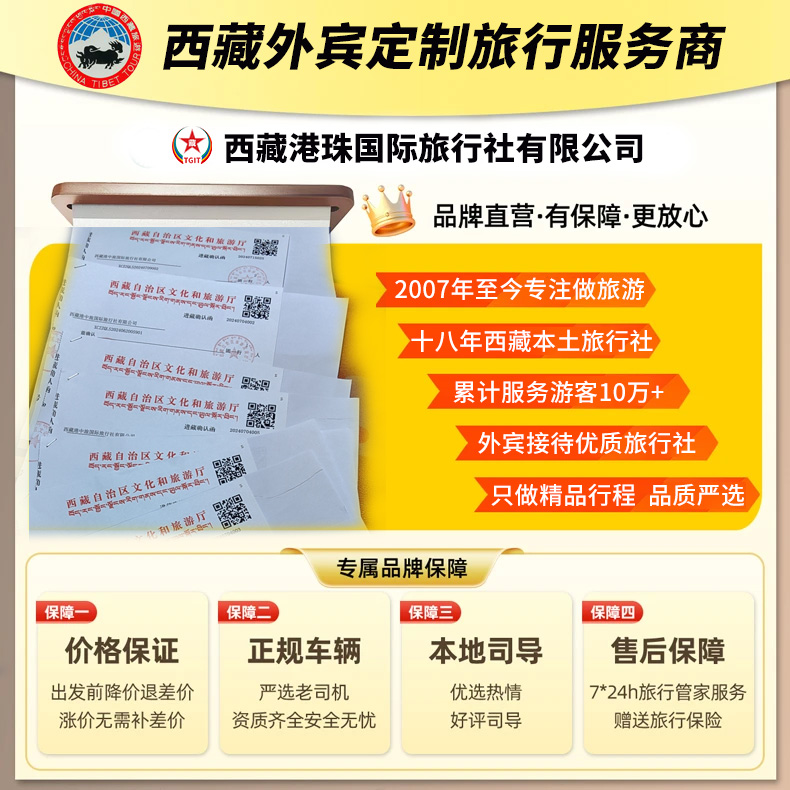 西藏港珠国际旅行社自2015年成立以来,始终专注于西藏旅游服务,至今已逾十载。如今,我们已成为拉萨地区具有广泛影响力的旅游企业,累计为超过50000名游客提供了通往西藏热门目的地的精彩假期。始终秉承“让每一次旅行都成为美好回忆”的使命,我们赢得了众多客户的信赖与支持。