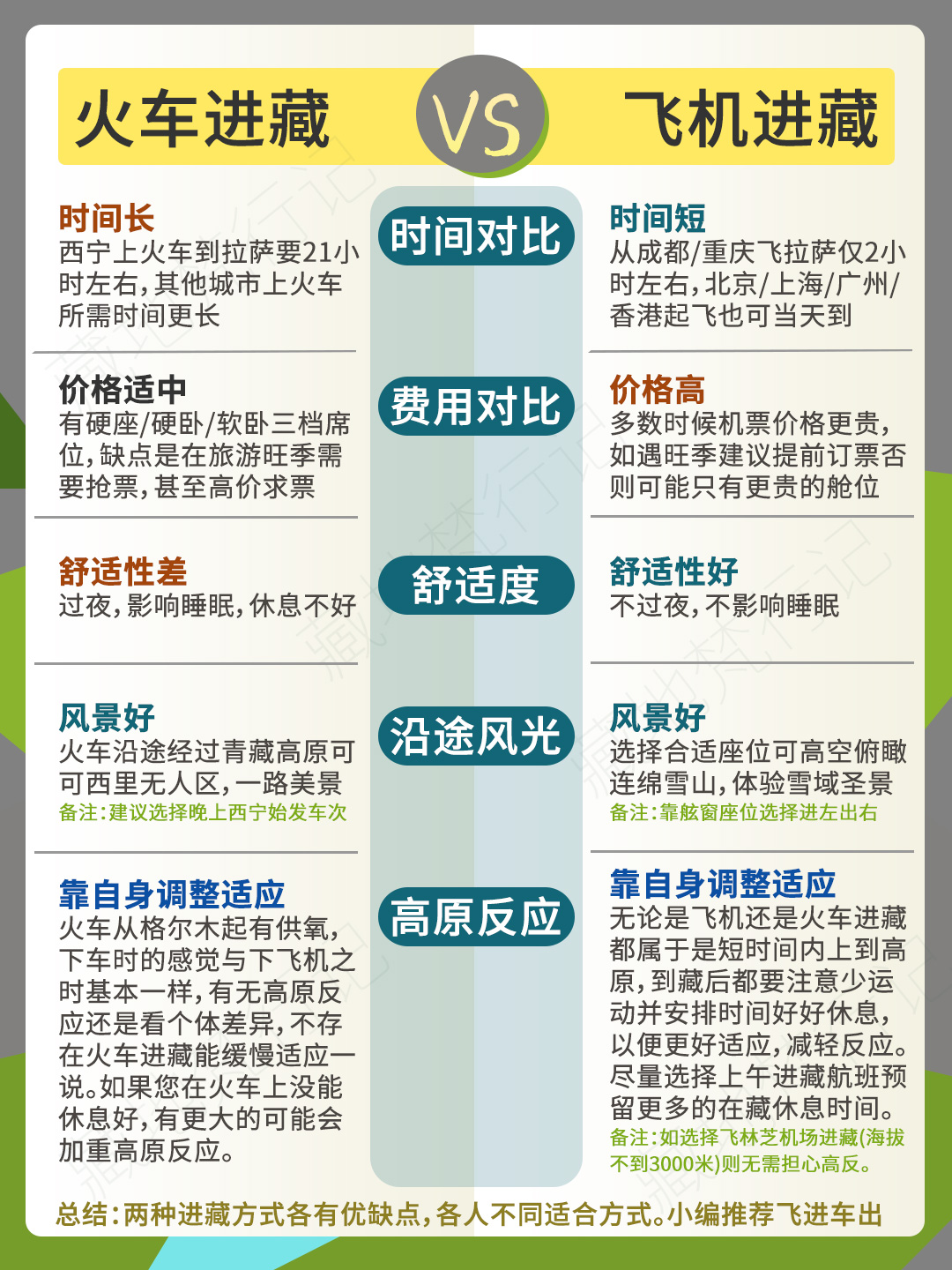 乘坐飞机/火车进藏和从陆路进藏各有利弊(下面附圖參考)。
