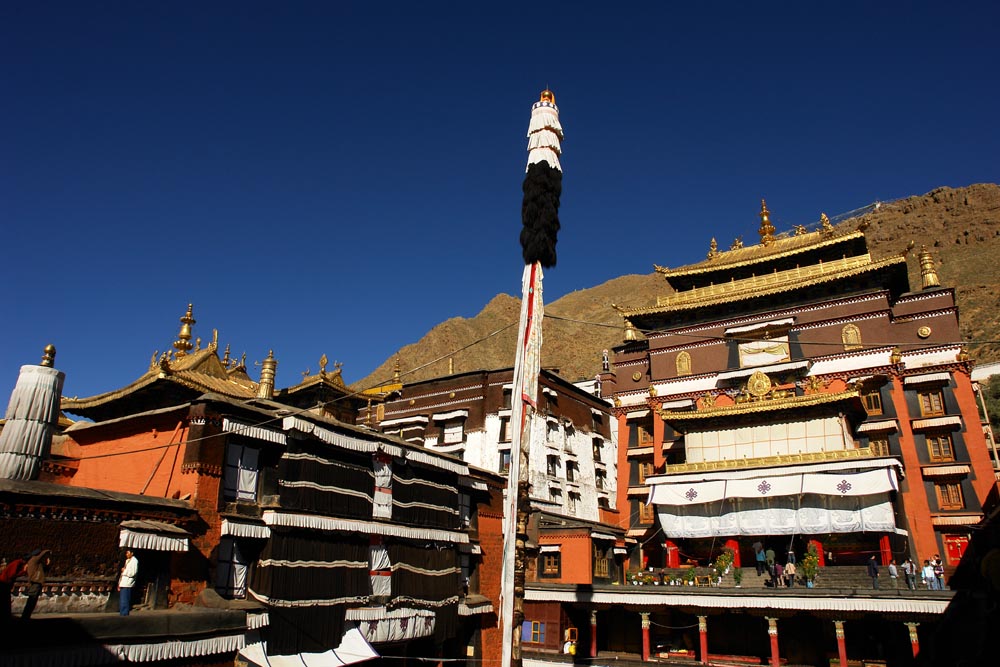 扎什伦布寺修建于1447年,为的黄教六大寺之一、历代班禅额尔德尼驻锡地,远眺整个寺院依山而筑,金顶红墙的主建筑群雄伟、浑厚、壮观、金碧辉煌。寺内香炉紫烟升腾,供台灯火闪烁,众佛尊容各异。大殿里僧侣诵经井然;佛像前,信徒顶礼膜拜。五百多年来它强烈地吸引着国内外佛教信徒,游人在这里朝拜、观瞻。寺内供奉有高26米世界上最大的室内铜像强巴佛。瞻仰十世班禅大师灵塔。