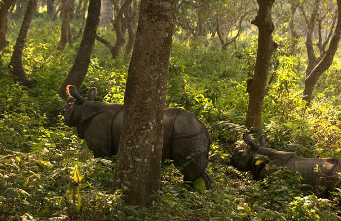 在丛林中穿越,观看悠然自在见人不惊的梅花鹿、麋鹿,可爱的小猴;你也许会看见孟加拉虎在丛林中信步,看到贪食的熊,敏捷的花豹以及众多的野生动物在丛林之中悠然自得地生活。这儿生活着亚洲独有的独角犀牛,骑着大象去寻找,是比较容易见到的。午餐后徒步穿越乡间小道,参观原始塔奴村。