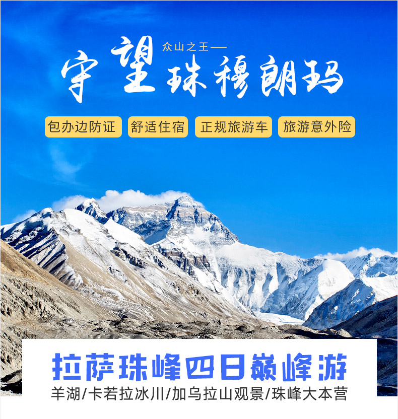 <珠峰专线>【挑战经典,巅峰之旅】羊湖+日喀则+珠穆朗玛峰+纳木措4日游(免费代办边防证)